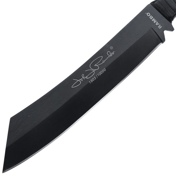 Uz naža un ādas maksts ir Stalones (Rambo) paraksts un filmas uzraksts.