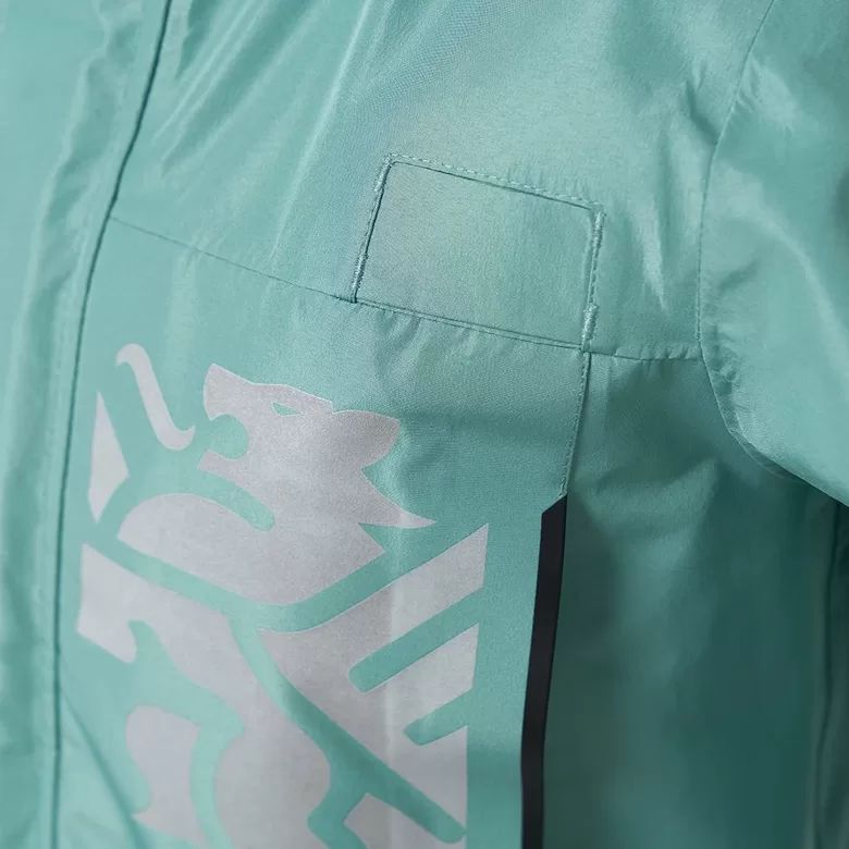 The sleeves feature snug-fitting cuffs made of rubberized elastic material. The jacket’s central flap has a magnetic closure for ease of use and additional protection from the elements. Inside, the jacket provides two more pockets for extra storage. The bottom of the jacket includes a volume adjustment feature to ensure a perfect fit. All seams and zippers are hermetically sealed to prevent water intrusion, ensuring maximum protection.