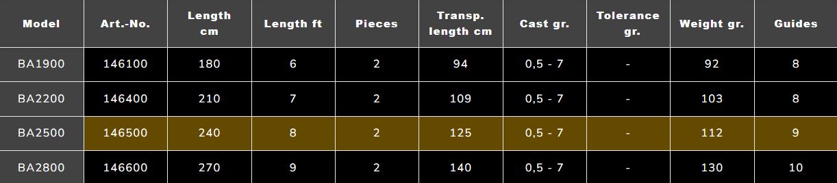 Atklājiet savu makšķerēšanas potenciālu ar mūsu modernās ceturtās paaudzes "Black Arrow" makšķeri. Viegls un jaudīgs Helicore kāts, izgatavots no T800 oglekļa, nodrošina izcilu makšķerēšanas prieku un uzticamību. Tā "ātrā" akcija ir ideāli piemērota gan cietajām, gan mīkstajām mānekļu ēsmai, nodrošinot precīzu kontroles un ātru reakciju.