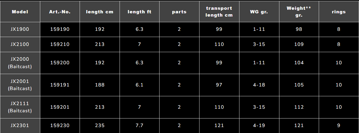 Šī iespaidīgā makšķerkātu sērija ir īpaši izstrādāta veiksmīgai mākslīgās ēsmas makšķerēšanai uz līdakām, zandartiem un asariem, aptverot visu mūsdienu aktīvās makšķerēšanas spektru. Visās iemetiena svara klasēs mēs piedāvājam ultimāto lomu mašīnu ar patiesu spēku Tavā plaukstā. Superātrais JIG-Xpert blanks, kas izgatavots no augstas veiktspējas Japānas oglekļa šķiedras, nodrošina izcilas iemetiena īpašības precīzai prezentācijai – pat īpaši tālos punktos.