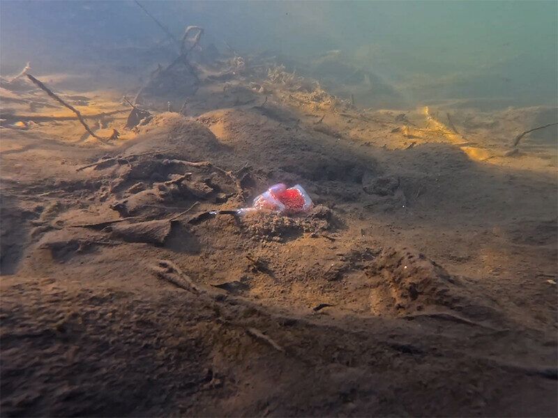 The surface of the sinker is coated in naturally-looking brown paint with black speckles for a better camouflage on the bottom. The notches on the surface grip the bottom and prevent it from gliding.
