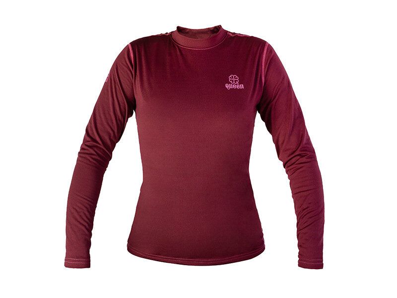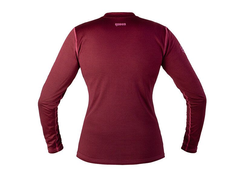 Enjoy outdoor activities even when it gets cold with our thermal underwear set Delphin QUEEN 4LOVE. The set Queen was designed for women for protection against low temperatures on fishing trips, hikes, or winter sports. The combination of materials makes for a very elastic fabric that will keep you comfortable on cold days. The set comes in a deluxe Bordeaux colour with pink stitching, staying true to the design of Queen series.