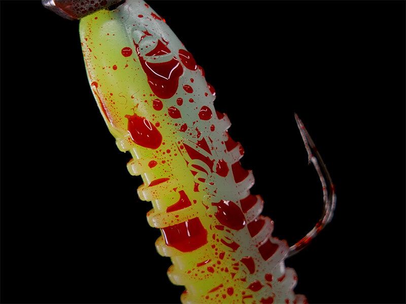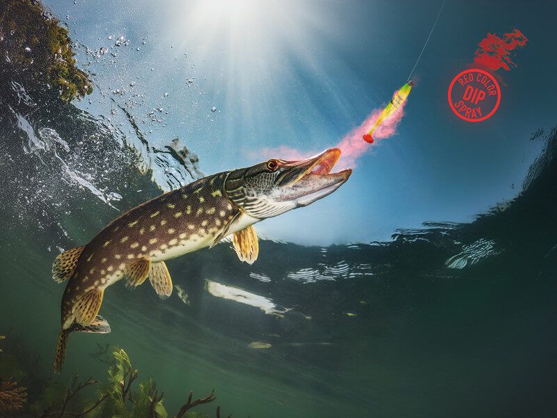 This spray comes in two versions - red and transparent. The red version creates a fluorescent cloud mimicking a bleeding fish, and the transparent one creates a strong scent trail without any visual effects.
