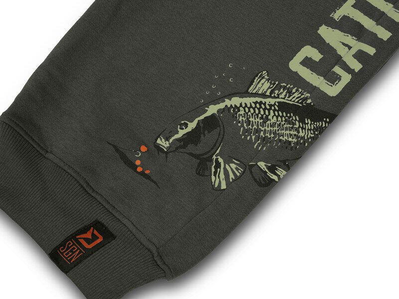 Sweatpants Catch me CARP NX have a stylish graphics with a catchphrase CATCH ME IF YOU CAN and an image of a carp inhaling a bait. Combine it with a T-shirt and a hoodie from the same set and create a unique and comfortable outfit.