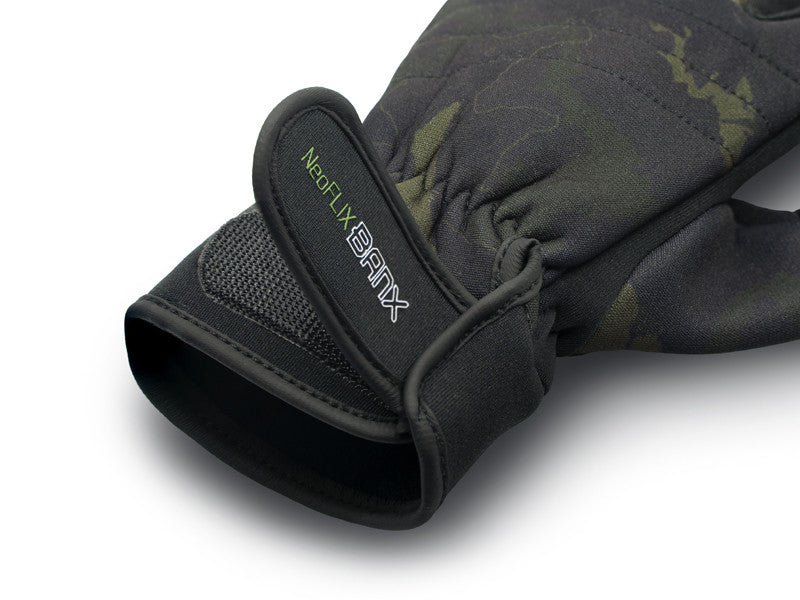 Plaukstas locītavas zonā cimdi noslēgti ar iešūtu elastīgo joslu un regulējamu Velcro siksnu, kas efektīvi bloķē auksto gaisu un mitrumu. BANX kamuflāžas dizains lieliski sader ar pārējo ekipējumu un piešķir modernu copmaņa tēlu – gan karpu sektorā, gan ziemas spiningošanā.