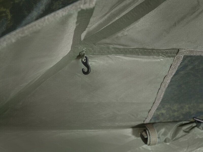 A great advantage is a carefully designed ventilation system consisting of several windows and a canopy of the tent. A large mosquito net window is located on both the front and rear walls, while four smaller windows are attached directly to the tent's ceiling.