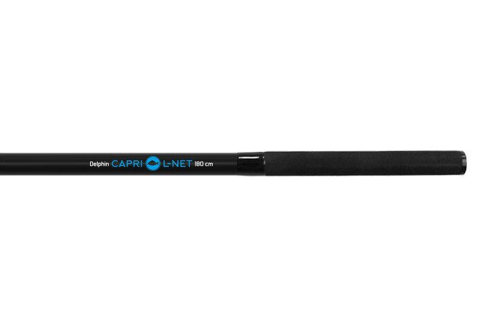 Delphin CAPRI rod series has already shown that a new series of high quality products at very reasonable price comes to our market. Modern landing net Delphin CARPI is perfect equipment for every modern sport angler. It is very light, but strong and perfectly ergonomically made in an elegant black colour. Landing net´s arms have the length of 85cm/100cm and are fitted in a strong metal connector.  The net has the depth of 75cm so even a very big fish fits in perfectly, its meshes are 15x7mm big. When designing this landing net, our first priority was its comfortable usage. Both handles are covered with a rubber material in the length of 15cm. Massive spinous connector connects these parts and the whole length is 180cm, including its head it is app.260cm. Its weight is only 840g.