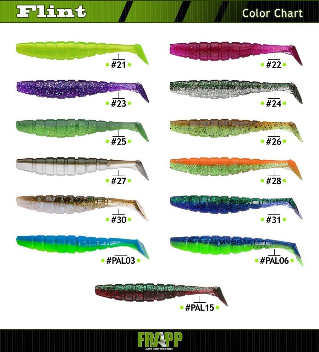 Frapp Flint is silicone lure a versatile medium-large model with a fairly voluminous segmented “Shad” body and an original chopped “heel” in the shape of a pentagon elongated from top to bottom. The segmented body and angled heel create swirls of water that make the Flint visible to predators from a distance. It was developed primarily for catching a predator in water bodies with the current and allows for a variety of animation techniques: from the classic jig "step" to uniform wiring - "swimming". It also performs well in stagnant water of lakes and reservoirs, but with slightly more intense animation.