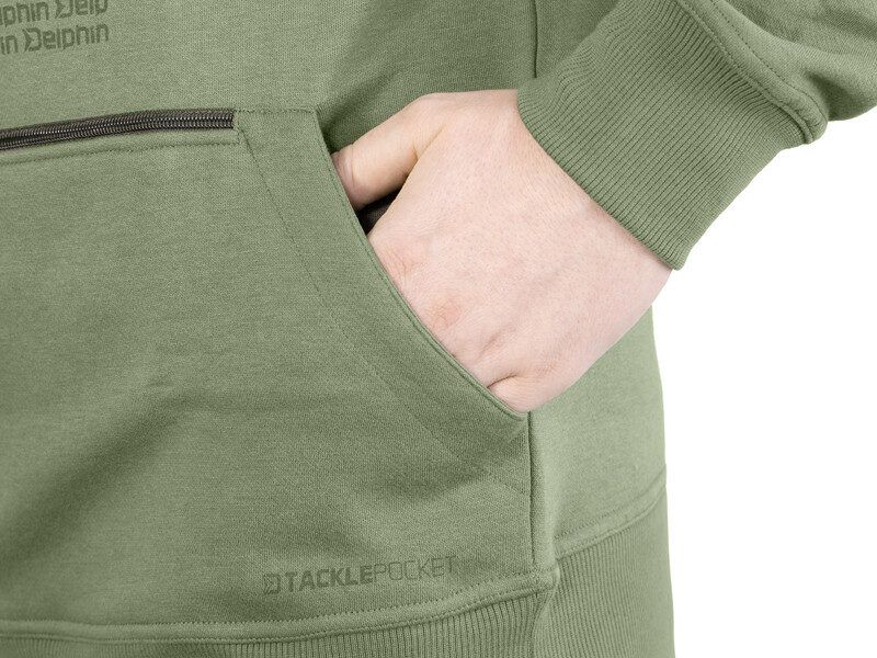 The design LOGOS consists of small Delphin inscriptions, creating an interesting mosaic in the shape of our logo. Plus, it has additional logos SGN and TACKLE POCKET.