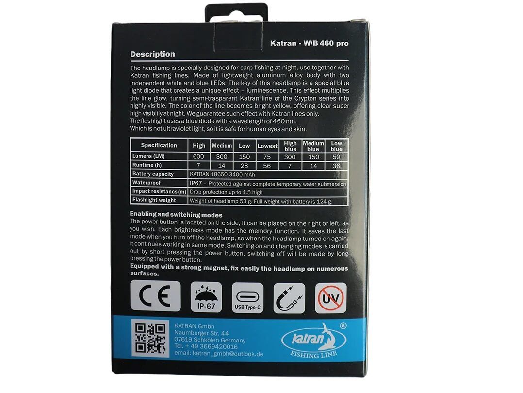 The colour of line becomes bright offering super clear visibility at night. We can guarantee such an effect, but only with Katran lines. The headlamp is equipped with a strong magnet, fix easily the headlamp on numerous surfaces.The flashlight uses a blue diode with a wavelength of 460 nano meters. This is not ultraviolet light and, therefore, safe for human eyes and skin