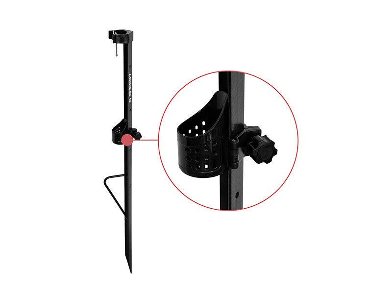 A big advantage of Delphin ENERGY is an adjustable rod holder that will safely hold various lengths of catfish rod. To secure your rod and prevent it from slipping when the fish bites, there is a strong and reliable safety mechanism on top. In addition, the stand has drain holes to drain excess water.