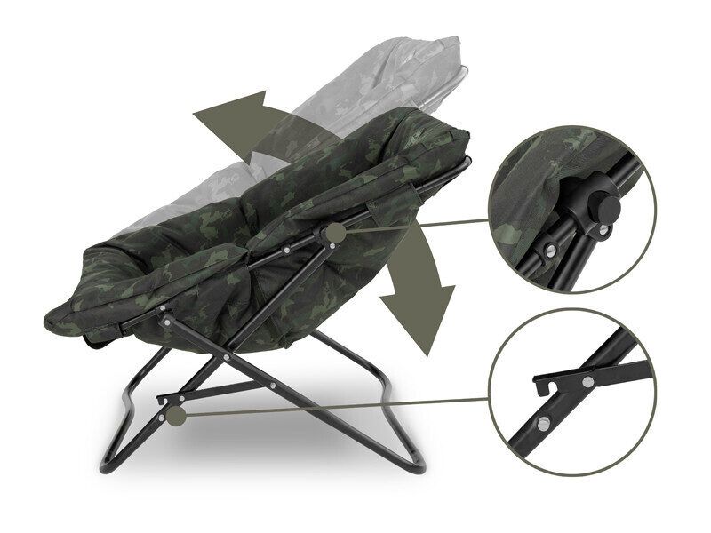Lielākā THIXER priekšrocība ir īpaši mīksts un biezs polsterēts matracis visā malā un centrā. Kad apsēdīsities tajā, jūs nevēlēsities piecelties, pat ja jums pie āķa būs zivs! Krēsls ir pārklāts ar 600D audumu ar oriģinālu BANX maskēšanās rakstu, lai uzlabotu izturību pat biežas lietošanas gadījumā.