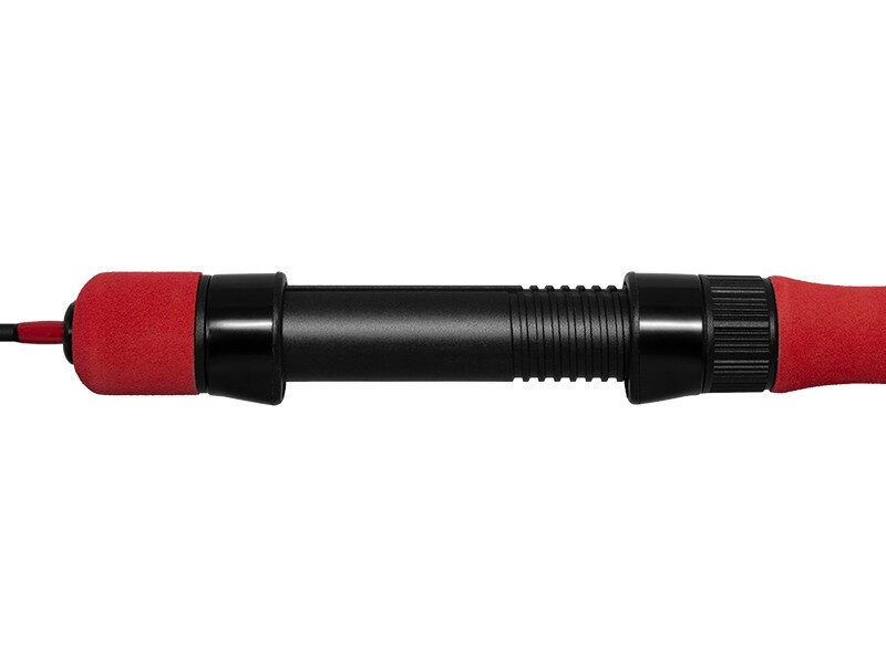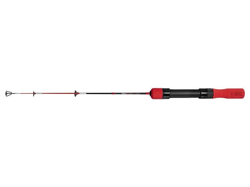 DOTZ rods are built on a quality fibreglass blank that is resistant to frost, but still offers a great deal of fun when you fight the fish. The tip of the rod is red for better bite indication, as it is extremely visible against the white surface. All the guides are evenly distributed on the blank to gain the most of the potential from the rod. It also has a DPS reel seat which is able to accommodate any ice fishing reel. The rod also has a nice red EVA foam handle that is easy to maintain and soft to the touch.