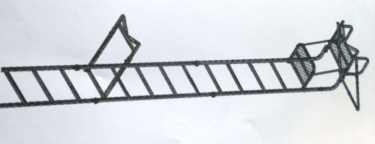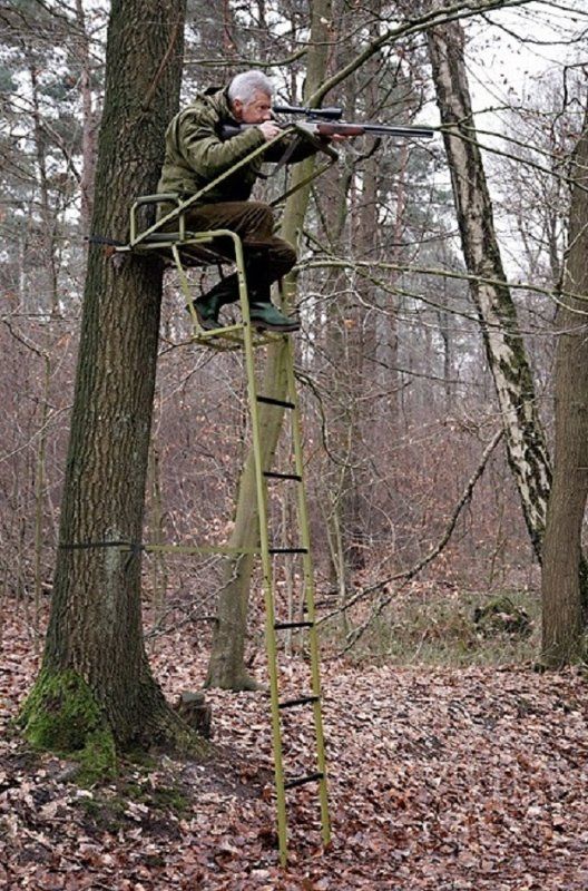 Salokāma medību trepe ar sēdekli. 5m augsta, saliekama 3 dažādiem augstumiem. Iztur 135kg svaru.