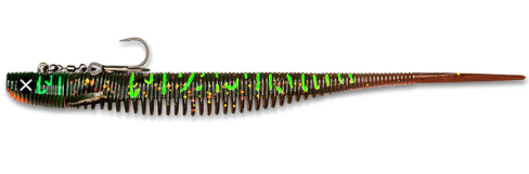 Māneklis tiek piegādāts pilnībā nokomplektēts, aprīkots ar 50 g ieskrūvējamu džiga galvu, kuras krāsa ir pieskaņota mīkstajai gumijai, veidojot vienotu un pievilcīgu vizuālo tēlu. Galvā iestrādāts spēcīgs un īpaši ass trīsžuburu āķis, kas nodrošina drošu pieciršanu. Pieredze rāda, ka papildu stinger āķis parasti nav nepieciešams, jo tas var pat pasliktināt mānekļa spēli.