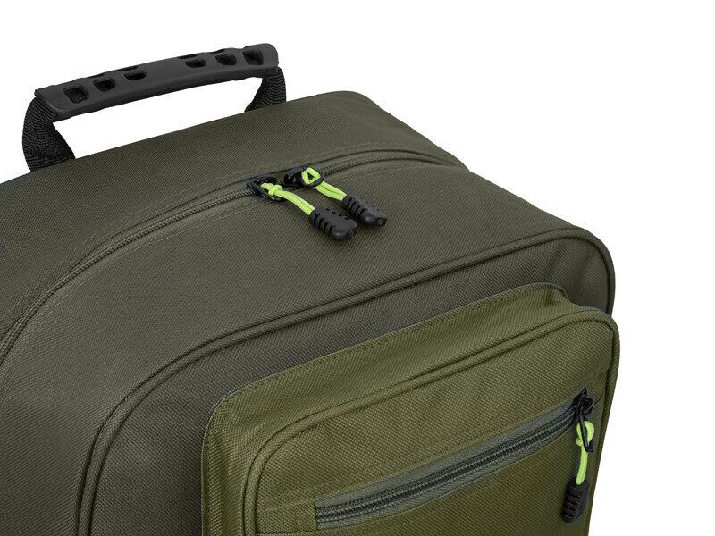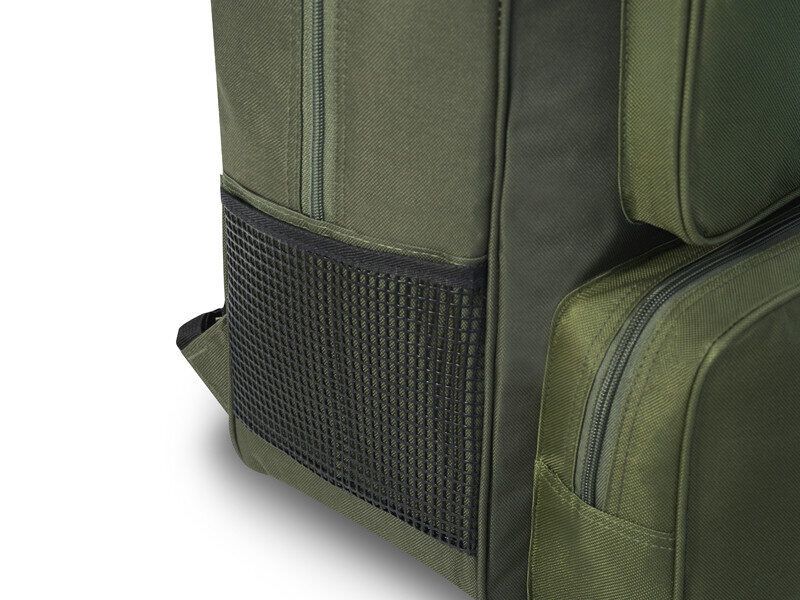 Priekšējās kabatas piedāvā daudz vietas mazu piederumu, dokumentu vai nelielas piederumu kastītes uzglabāšanai. Papildus sānos atrodas gumijota tīkla kabatas, kurās var ievietot pudeli vai termosu ar iecienīto dzērienu. Katrai kabatai ir kvalitatīvs rāvējslēdzējs ar spilgtas krāsas slīdni, kas ļauj tās viegli atrast pat naktī.