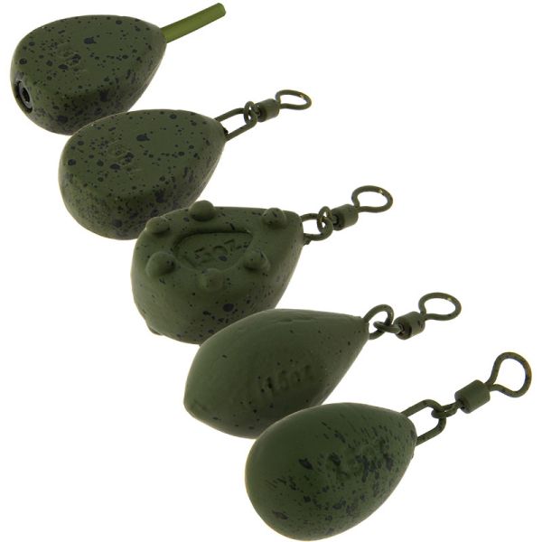 1.50oz leads with a dark green, soft touch, non reflective coating with black 'splash spots' and size 8 swivel . Available in the follwoing models;