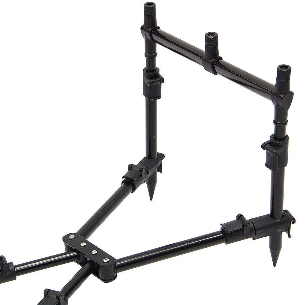 Tā garums un augstums ir regulējams, un tajā var ievietot līdz pat trīs makšķeres.