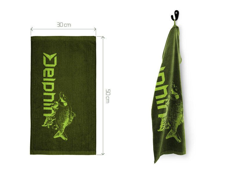 Tas ir izgatavots no 100 % kokvilnas un ir ļoti mīksts pieskārienam. Zaļā krāsa ar lielu Delphin logotipu un karpas siluetu noteikti iepriecinās ikviena makšķernieka aci.