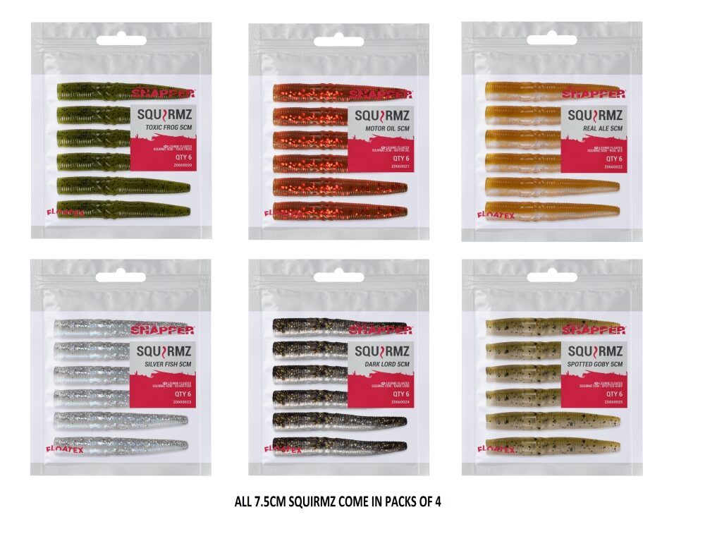 Korum Snapper Floatex Squirmz 7.5cm are a durable floating lure that enables you to fish with the popular finesse 'Ned Rigging' technique really effectively. The FLOATEX material is much softer than normal lures, yet resists any cuts and tears due to its stretchy compound. This bait is incredible retrieve it slowly and let the Squirmz wriggle, twist and shake. Long pauses can bring great rewards, as the Squirmz stand straight up off the bottom due to their buoyancy. On the pause, the Squirmz tail lifts up, creating a super natural attraction that imitates a wide variety of prey from small baitfish, to crayfish standing in the defensive position. The chevron body design creates a darting action big predators cannot resist.