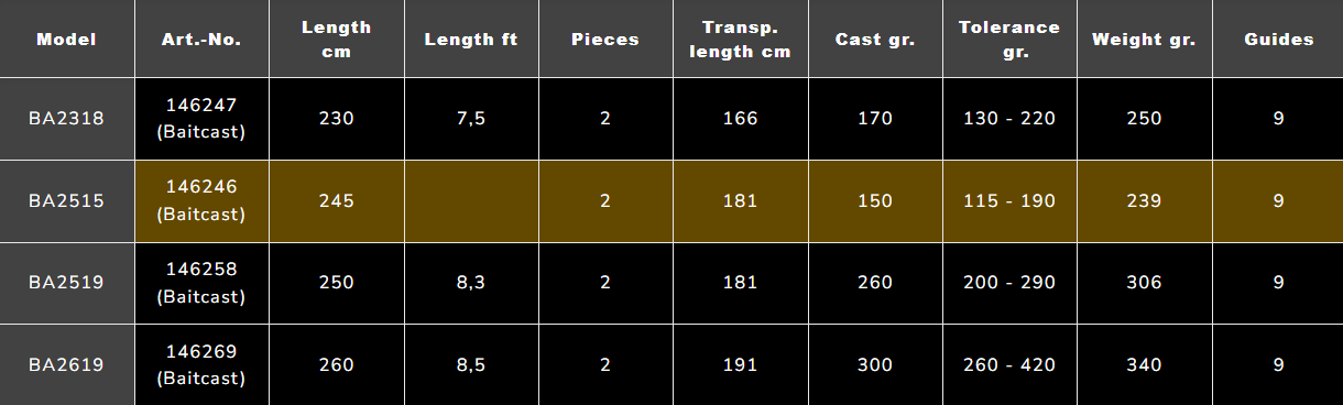 Spinings Sportex Black Arrow G-4 Musky 245cm / 115-190gr Casting