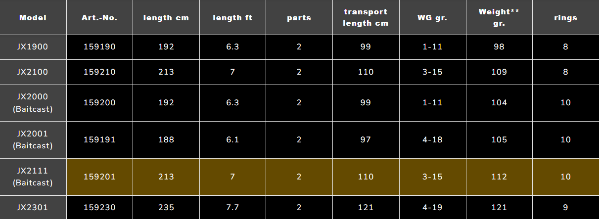 Šī iespaidīgā makšķerkātu sērija ir īpaši izstrādāta veiksmīgai mākslīgās ēsmas makšķerēšanai uz līdakām, zandartiem un asariem, aptverot visu mūsdienu aktīvās makšķerēšanas spektru. Visās iemetiena svara klasēs mēs piedāvājam ultimāto lomu mašīnu ar patiesu spēku Tavā plaukstā. Superātrais JIG-Xpert blanks, kas izgatavots no augstas veiktspējas Japānas oglekļa šķiedras, nodrošina izcilas iemetiena īpašības precīzai prezentācijai – pat īpaši tālos punktos.