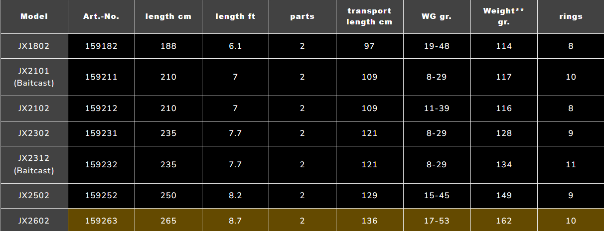 Šī iespaidīgā makšķerkātu sērija ir īpaši izstrādāta veiksmīgai mākslīgās ēsmas makšķerēšanai uz līdakām, zandartiem un asariem, aptverot visu mūsdienu aktīvās makšķerēšanas spektru. Visās iemetiena svara klasēs mēs piedāvājam ultimāto lomu mašīnu ar patiesu spēku Tavā plaukstā. Superātrais JIG-Xpert blanks, kas izgatavots no augstas veiktspējas Japānas oglekļa šķiedras, nodrošina izcilas iemetiena īpašības precīzai prezentācijai – pat īpaši tālos punktos.