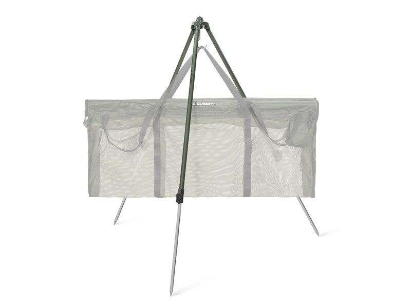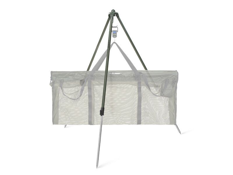 Kājas ir savienotas ar metāla daļu augšā, kas satur lielu āķi, lai tajā piestiprinātu maisu ar jūsu lomu.