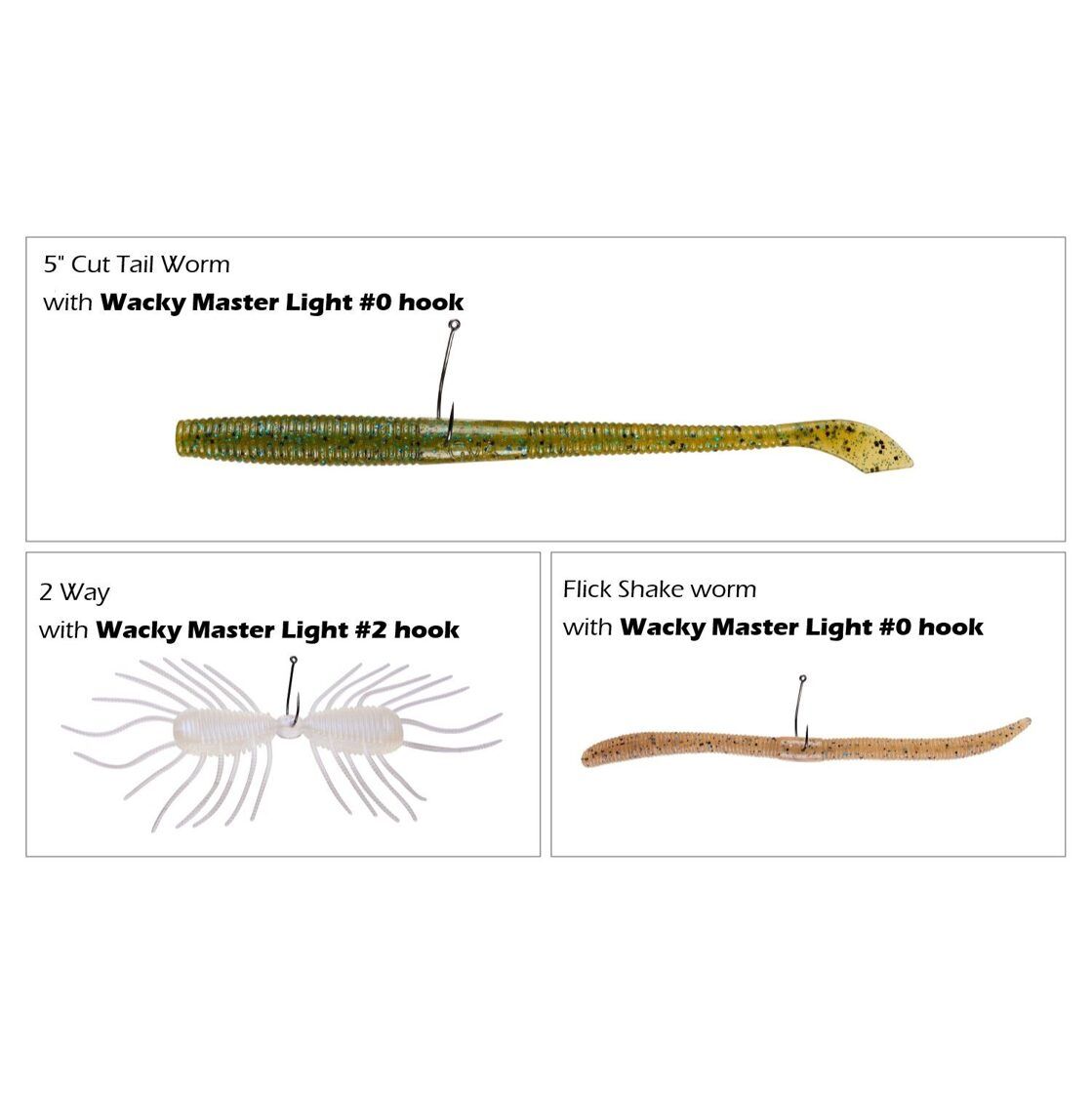 Ļoti asi un uzticami āķi. Wacky Master Monster ir liela izliekuma leņķa āķi, ar salīdzinoši īsu kājiņu, īpaši pastiprinātu resnu un izturīgu stiepli. Paredzēti lielu tārpveidīgu mānekļu montāžai ar wacky metodi, taču sava ļoti "pareizā" izliekuma dēļ būs vienkārši perfekti zandartu drop-shot ar liela izmēra mānekļiem. Made in Japan!