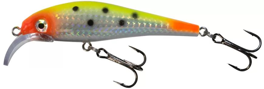 The Jesse Flash 8cm lure is ideal for catching zander, trout, and larger perch. Jesse Flash 8cm lure- guaranteed hot swimming motion irritates fish. The traditional 11cm and 8cm Jesse lures are now offered in new hologram colors. They were designed and implemented by Korkiakoski Uist to feature moving balls that create a rattling sound and additional swimming movements. Equipped with Mustad UltraPoint, extra strong, and chemically sharpened treble hooks, these lures are sure to attract fish with their unique.