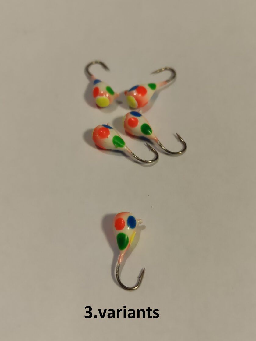 Mormiškas ziemas makšķerēšanai ar formu "Banāns". Izturīgi āķi un dažādas krāsas.